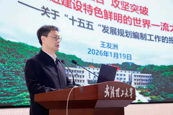 校长王发洲以《创新融合 攻坚突破 全力奋进建设特色鲜明的世界一流大学》为题,从战略基础、战略定位、战略任务三个维度,作“十五五”发展规划编制工作报告。他指出,“十四五”期间,学校秉承“一个集中体现、两个更加注重、三个更加聚焦”发展思路,各项事业取得显著成效,实现了“两个重要突破、四个显著提升”。他强调,“十五五”时期是夯实基础、全面发力,实现中长期发展目标的关键阶段。面向2035年的重要战略基点,学校将坚持“10年谋远、5年攻坚、3年突破”,在传承的基础上进一步强化“四个更加突出”和“五个更加深化”,按照“一二三四五”总体思路,以“创新融合”为战略路径,以“攻坚突破”为行动主线,以构筑人才竞争优势为突破口,全面实施“卓越行动计划2.0·攻坚”,推动学校四大优势融合转化为高质量发展的七个新动能,驱动14项重点任务落地见效,奋力实现2030年“三个系统提升、两个重要突破、两个全面提升”发展目标,全面塑造发展竞争新优势,为“十六五”发展奠定更加坚实的基础。